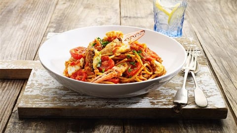 Use 3-4 whole cleaned cooked crabs instead of the picked meat, or add crab meat to the sauce and reserve the shell and claws for presentation when serving.